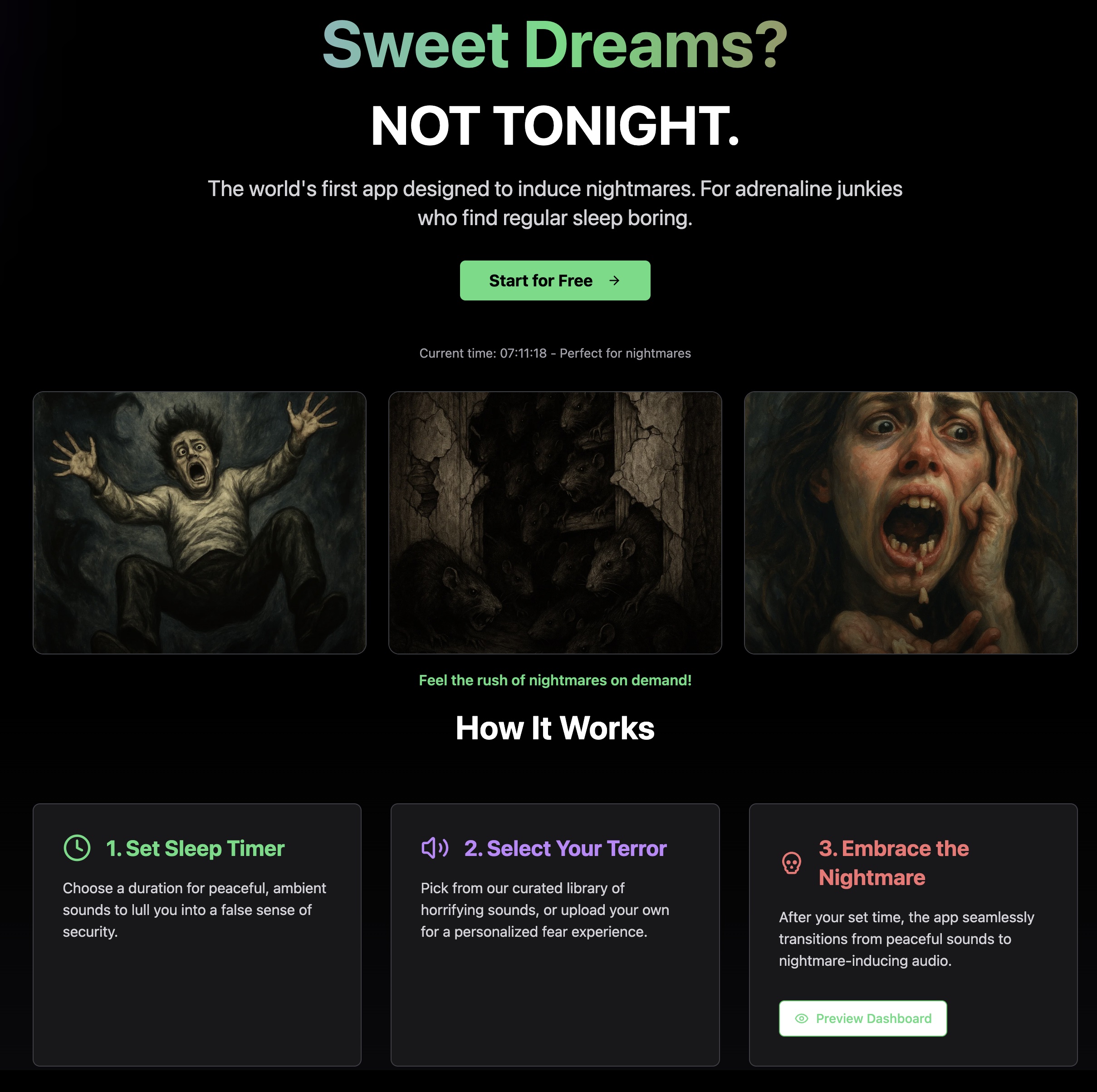This app is for the adrenaline junkie who thinks regular sleep is a drag. Why waste time in boring dream-free slumber when you really can make your worst nightmares come true!